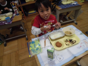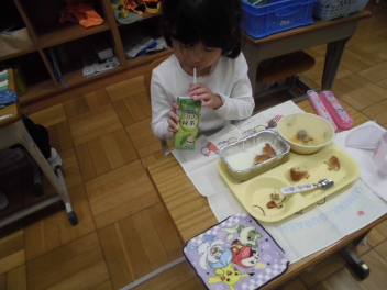 「夜は、月が見られるといいね。」と話をしながら食べていました。