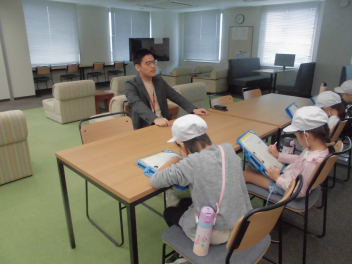 西図書館では、館内の見学や館長さんへインタビューをしました施設のことや働く人のことを、たくさん聞くことができました