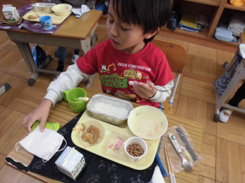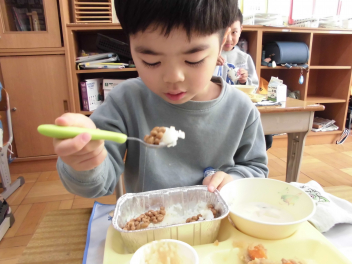 納豆のねばねばと格闘しながら、美味しそうに食べていました。