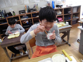 •  17日(月)の給食は3年生の国語科の教科書にのっている「すがたをかえる大豆」にちなんだ献立でした。