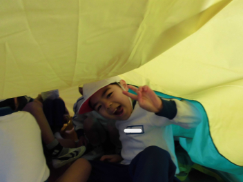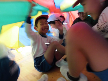 みんなの心を1つにして、音楽に合わせてバルーンを動かしました。
