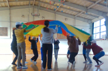 • 1月は、自立活動で「パラバルーン」を行いました。