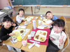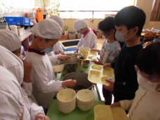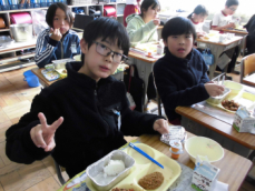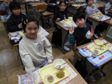 ふるさと給食として、徳川家康が好んで食べていたといわれる浜納豆を使用した浜納豆煮、静岡の郷土食でさば・いわしなどのすり身を骨や皮と一緒に作る黒はんぺんを使用したお茶フライ、三ヶ日みかん果汁を使用したゼリーを提供しました