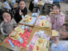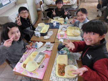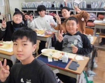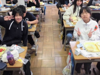 どの学年もクラスの仲間と食べる最後の給食を楽しくおいしく味わっていましたwink