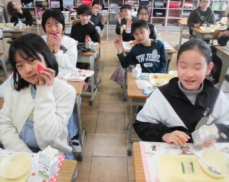 中には、「中学では給食がない」と教えてくれた子もおり、給食の味をじっくりあじわっている子もいましたblush