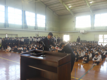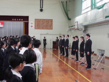 6年生は、卒業まで残り1ヶ月をきりました。近所のみんなと集団登校するのもあと少しです。地域のボランティアの皆様や学校の先生、保護者に見守られ、事故等なく今まで登校する事ができました。