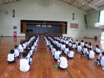 •  昨日、6年生が無事に1泊2日の修学旅行から帰ってきました。画像は帰校式の様子です。