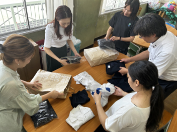 9/25(木)の参観会の日に、昨年度の卒業生や、今年度の在校生の皆さんの善意にて集まったリユース品の仕分け作業を行いました。
