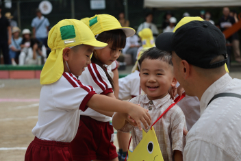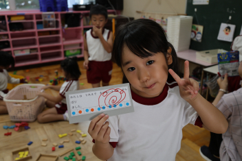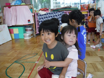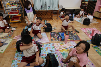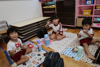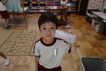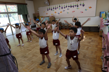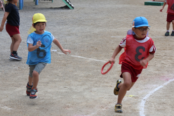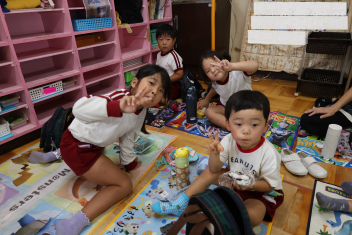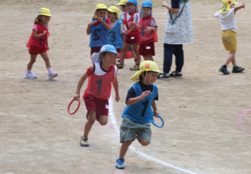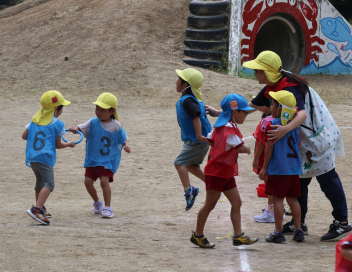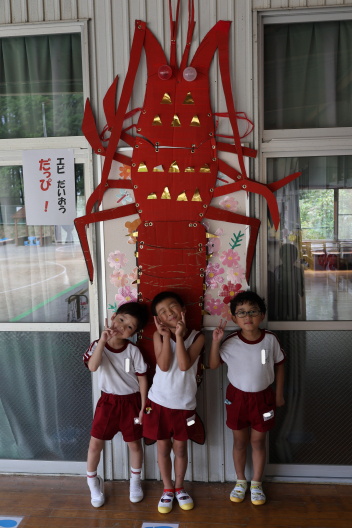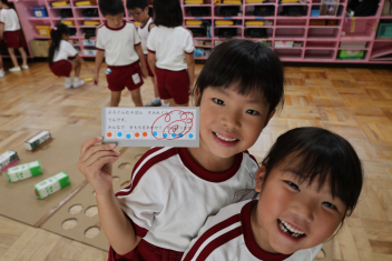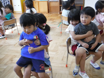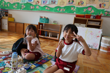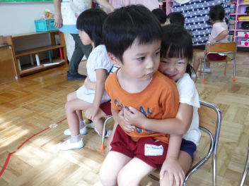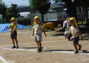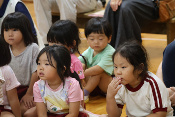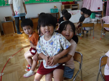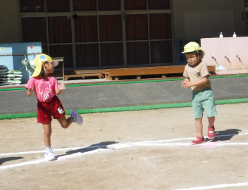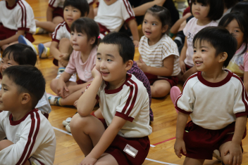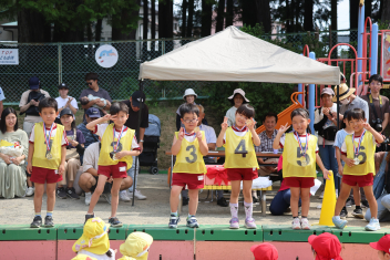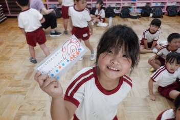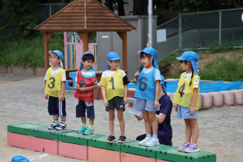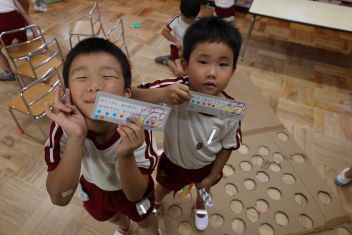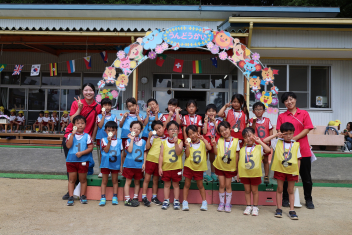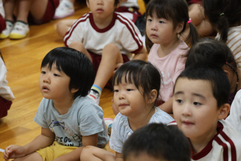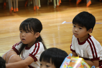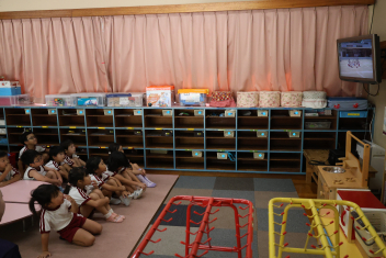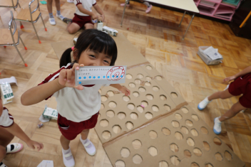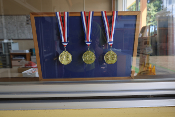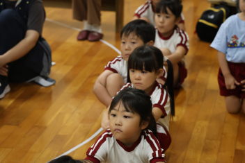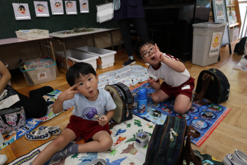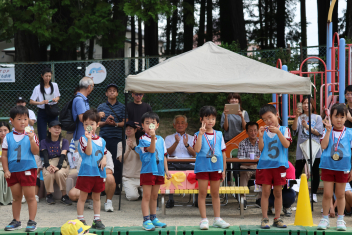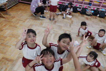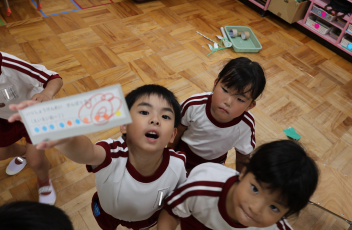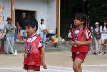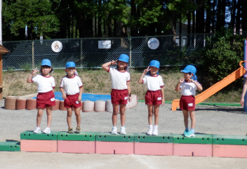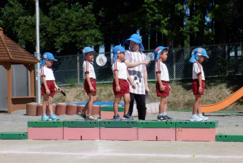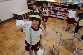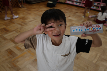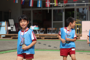 職員室前にメダルが飾ってあります。年長さんが、「3つしかない・・・」と心配していました。「練習を頑張ると増えていくよ」と伝えています。年中さんが見に来た時に、「ぼくらはもらえないの」と、年長さんが羨ましいそうでした。