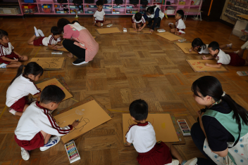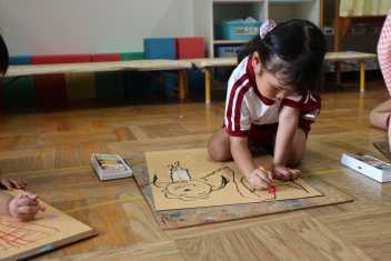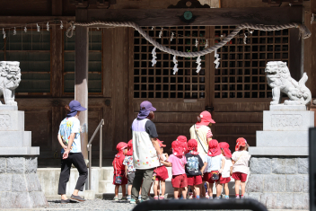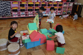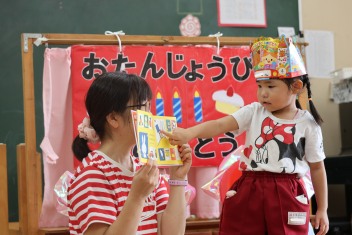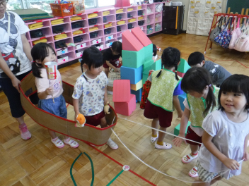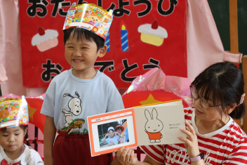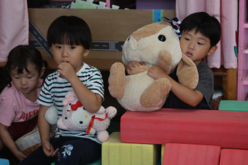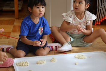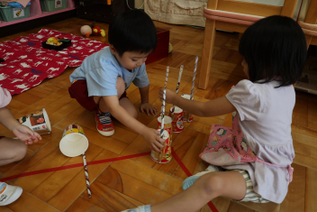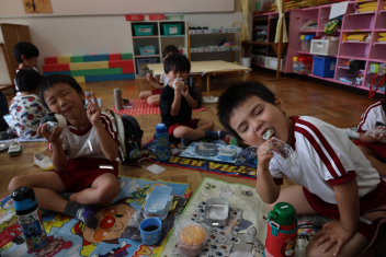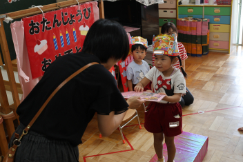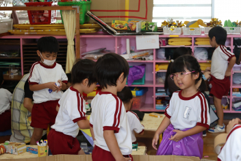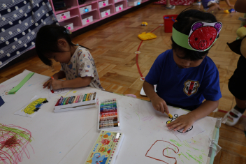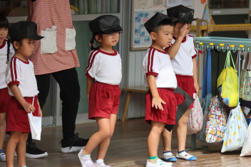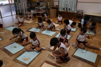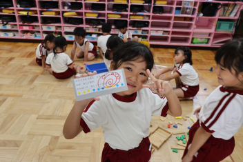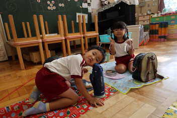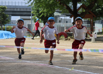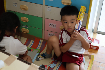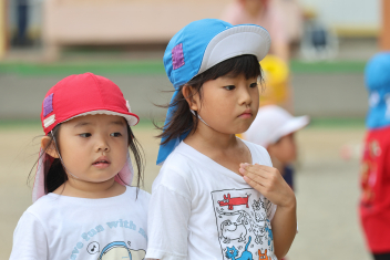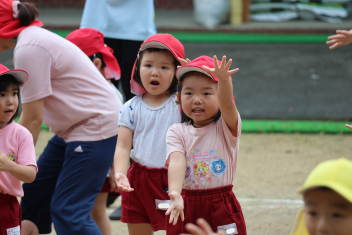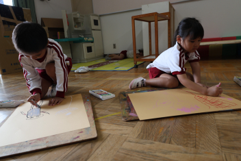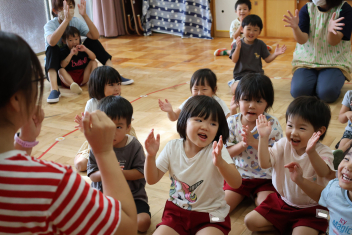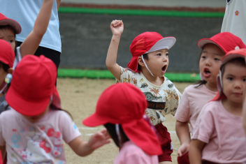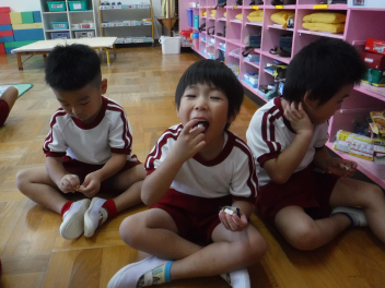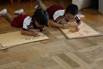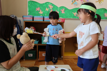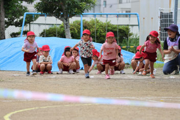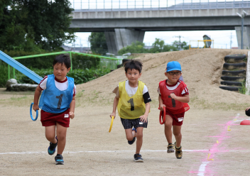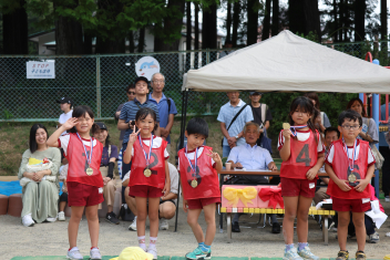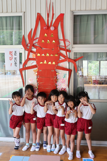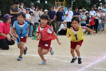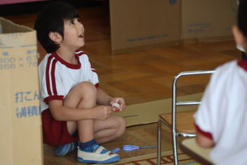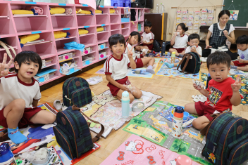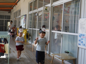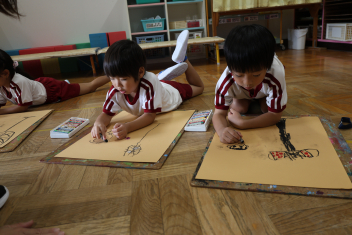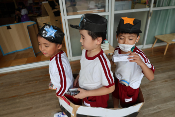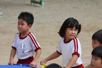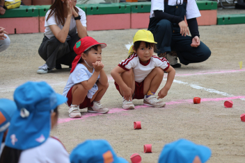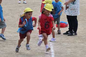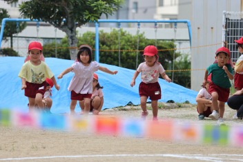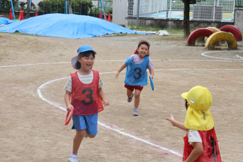 職員室前にメダルが飾ってあります。年長さんが、「3つしかない・・・」と心配していました。「練習を頑張ると増えていくよ」と伝えています。年中さんが見に来た時に、「ぼくらはもらえないの」と、年長さんが羨ましいそうでした。
