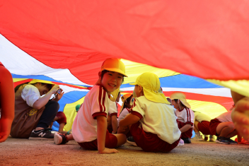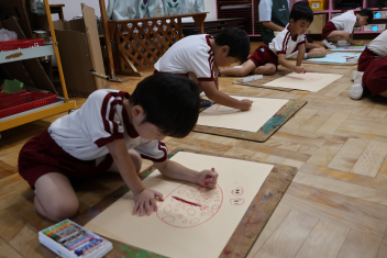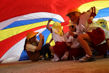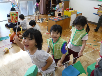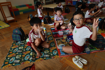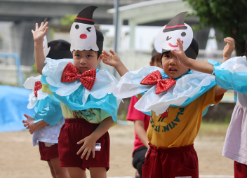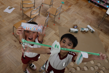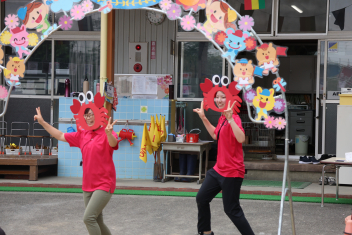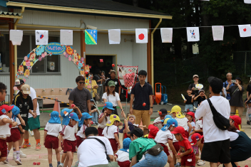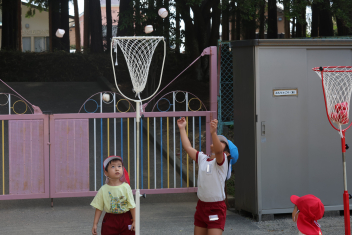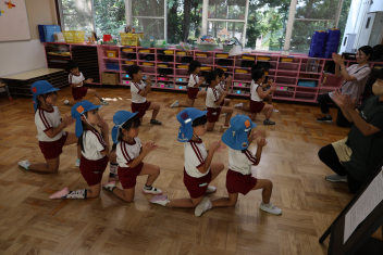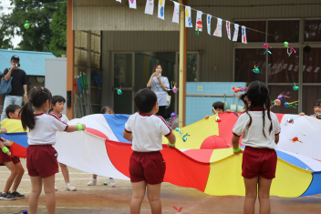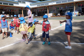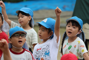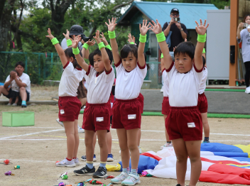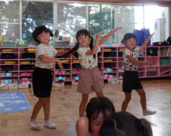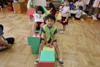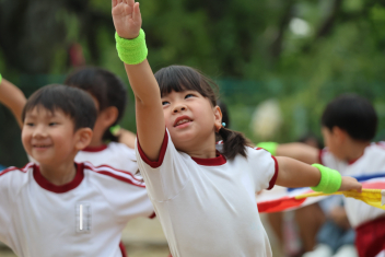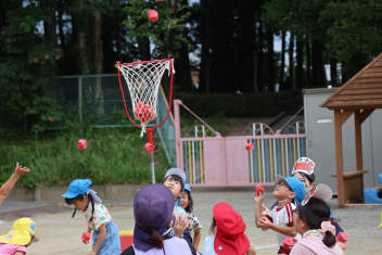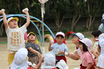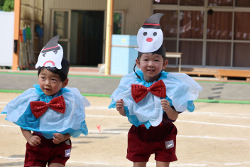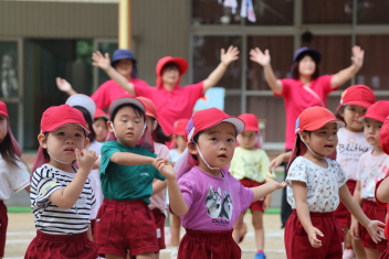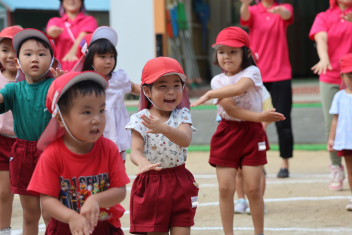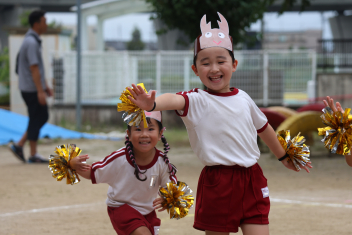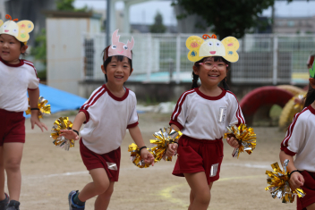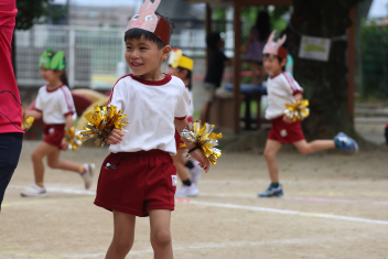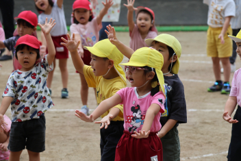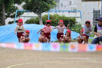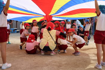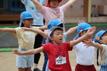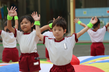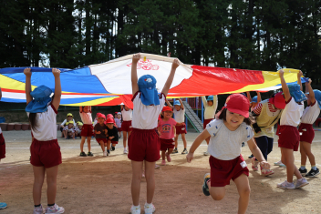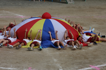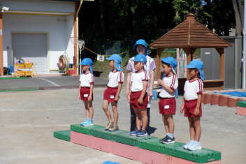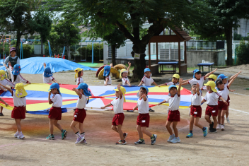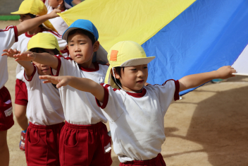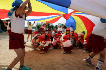 年長さんのパラバルーンの演技が格段に良くなっていました。目線が上がり、指先までしっかり伸び、背筋もピンとして、とてもカッコ良かったです。花火も4人少なかったのですが、高く上がっていました。当日は、天高く打ち上げられることでしょう。