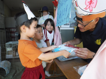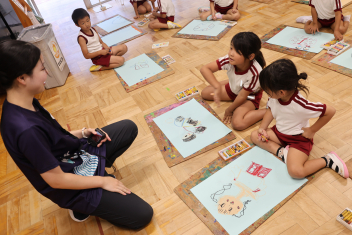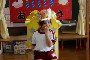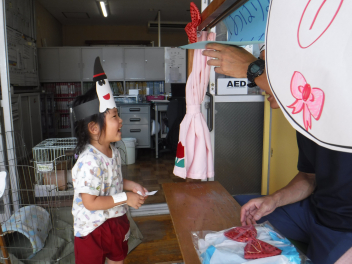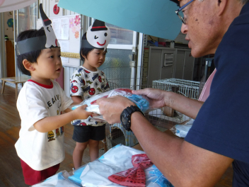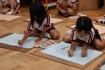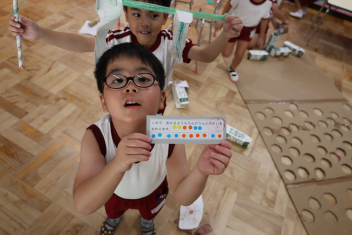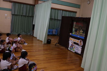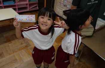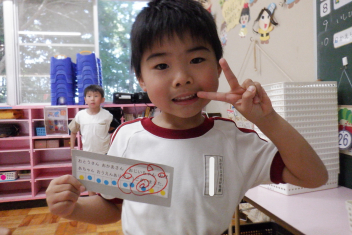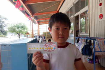 開・閉会式のセリフの練習をしています。暗記で大きな声で言えたら頑張りカードにシールを貼ってもらい、10個貼ってもらえたら、合格の花丸を担任に付けてもらっています。頑張っています。