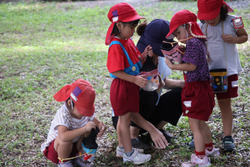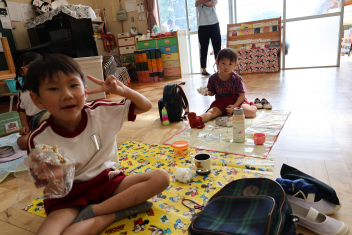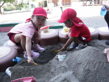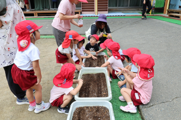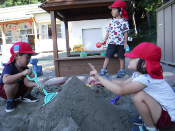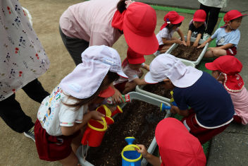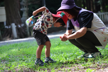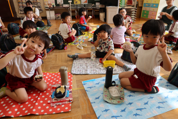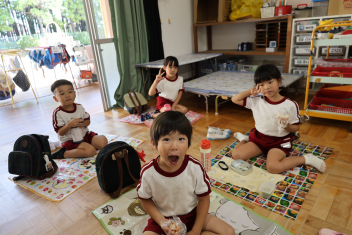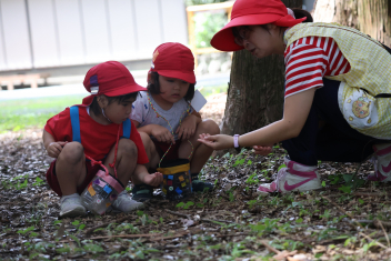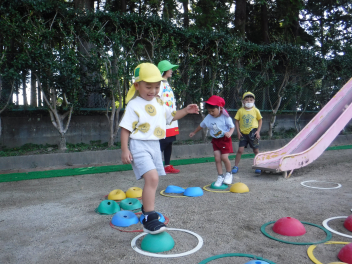 秋らしい涼しさを感じる日でした。子供たちは、登園後や運動会練習後に熱中症を心配することなく遊具で遊ぶことができました。どの子も楽しそうに遊んでいる姿を見ることができました。私は、年少さんとダンゴムシ取りをしました。