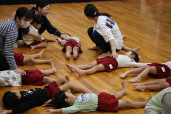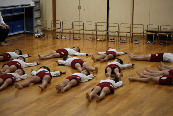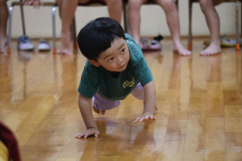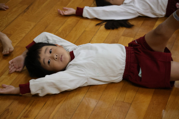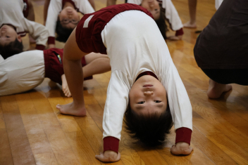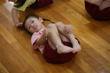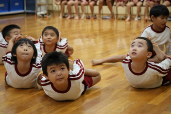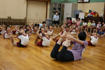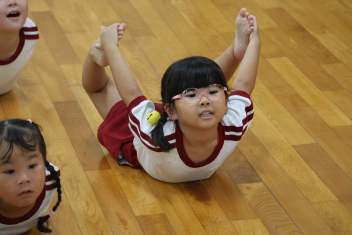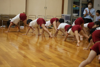 手の付き方にも注意して、腕や足の関節まで伸びるように頑張りました。年長さんはよく伸びていました。