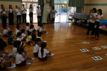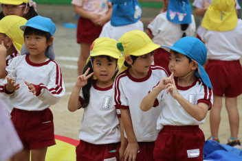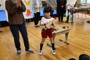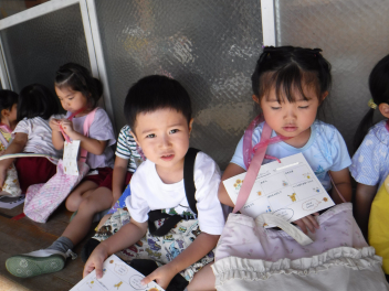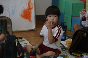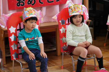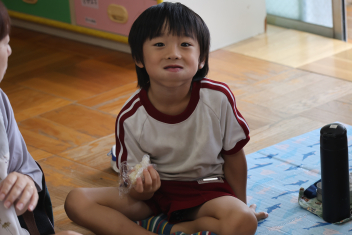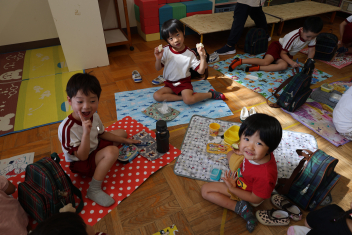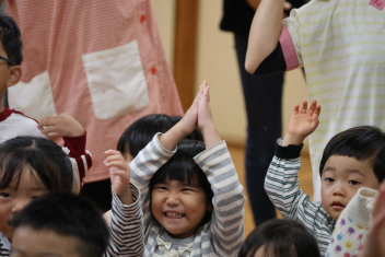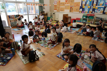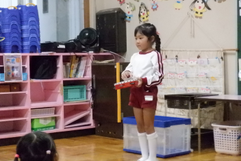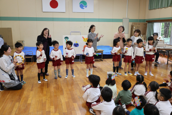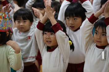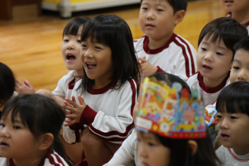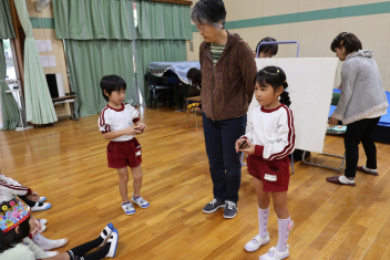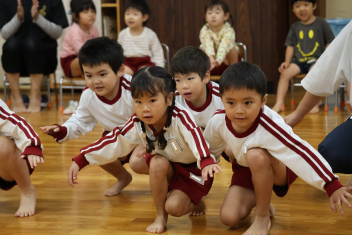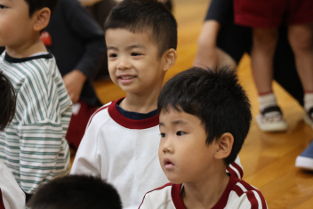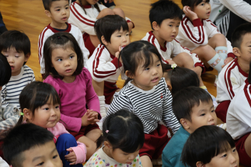 ひよたま学級がありました。年少さんが「サンサン体操」と「ちょっとだけ体操」を披露しました。お兄さんお姉さんになった感じでした。最後にたまご学級の子を大勢でかわいがる様子が、お兄さんお姉さんぶりそのものでした。