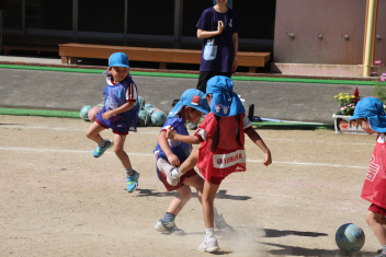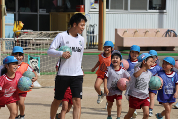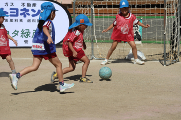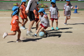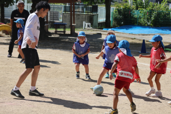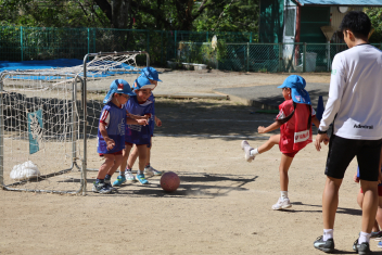 • 年長さんが、ジュビロ磐田 サッカー巡回教室に参加しました。コーチの指導の下、ウォーミングアップ、ボール慣れ、シュート練習、ミニゲームを行いました。グッドタイミングで昨日、赤佐幼稚園PTAのサッカー練習が始まり、みんな意欲的でした。