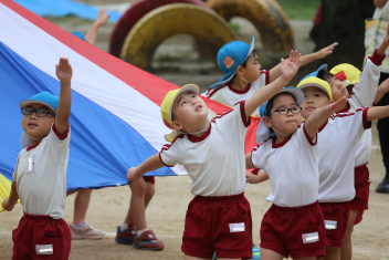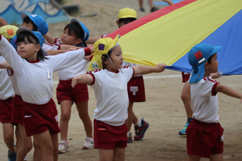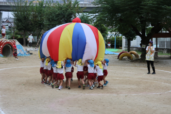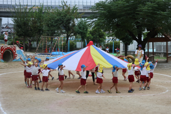 年長さんと年中さんが一緒にパラバルーンをやりました。最後の合同パラバルーンでした。