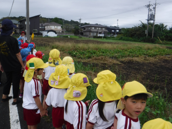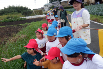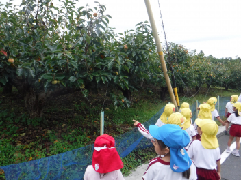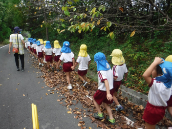 •  今日の散歩は、前回より少し距離を伸ばして、サツマイモ畑を見ながら柿畑、御馬が池、通称:トトロの道を通って、秋見付けをしてきました。赤佐幼稚園の周りは散歩道に最適です。子供たちにとって歩くことも大事ですので!