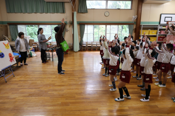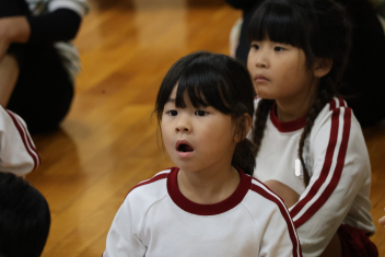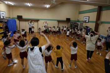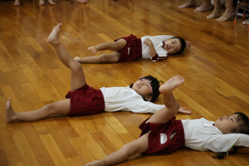 今日から週1回のリズム遊びが始まりました。今日はまず、1学期の動きを確かめました。できなかった動きができていたり、腕や膝が伸びていなかったところが伸びていたりと動きが上達していました。子供たちの心身の成長と運動会練習でかけっこやリレーで走ったり、ダンスでいろいろな部位を動かしたりしてきた成果だと思います。