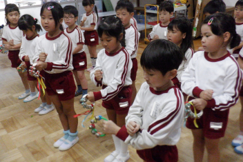 年長さんは一人ひとつ楽器をもって、ジングルベルを南風さんと一緒に演奏しました。
