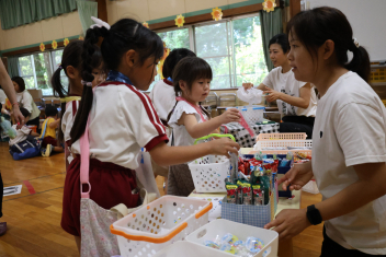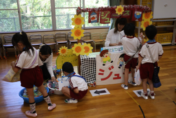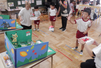 • 今日はPTA主催のひまわり祭りが催されました。PTA役員をはじめ多くの方が積極的に準備から運営に携わっていただきました。お母さん方のマンパワーには感謝しかありません。この日を楽しみしていた子供たちはゲームをしたり、ごほうびをもらったりして、ニコニコ顔でした。