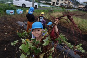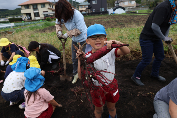 •  今日は地域の方にお借りしている畑にサツマイモ掘りに出掛けました。