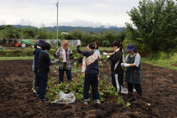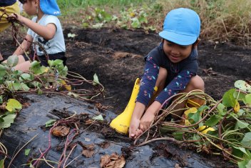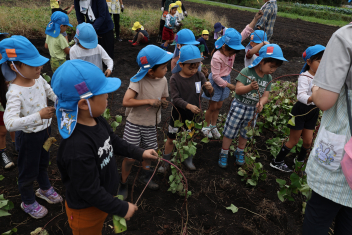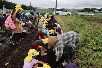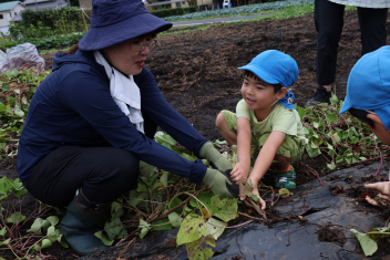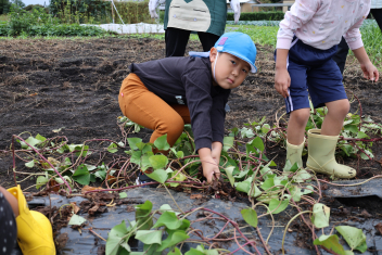 園芸サークルの方につるを切ったり、マルチを外したりすることをお願いできたので、子供たちがすぐに芋掘りをすることができました。