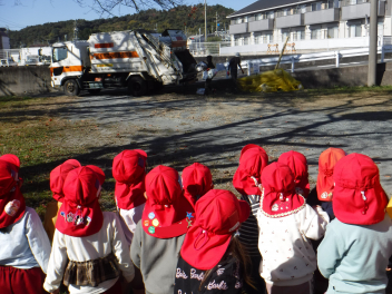 ちょうどごみ収集車が止まっていたので、その様子を見学することができました。