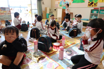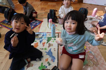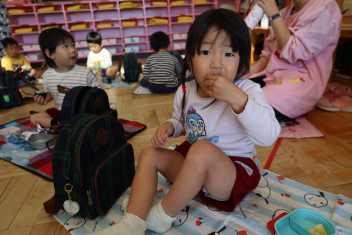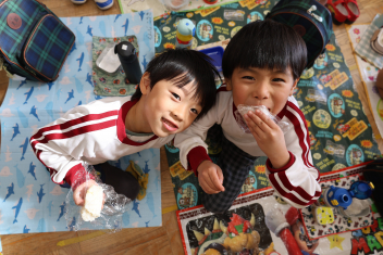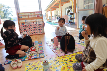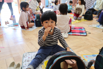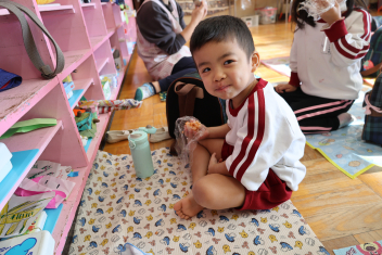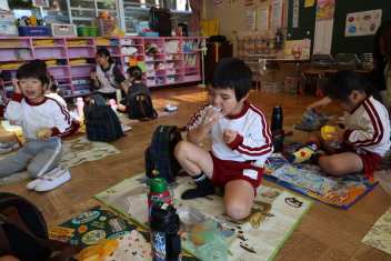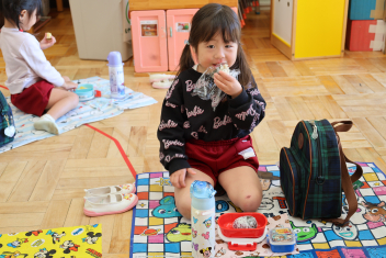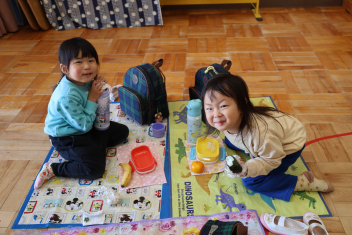 今日は、ピクニックランチの日でした。(ごめんなさい 年長さんを撮影しようと思ったときに食べ終えていました。)