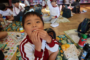 子供たちは、しっかり皮をむいて、おいしそうに頬張って食べていました。みんな完食していました。