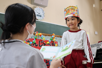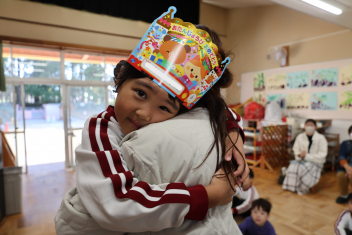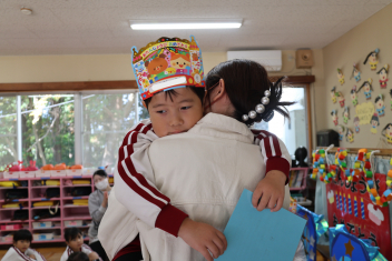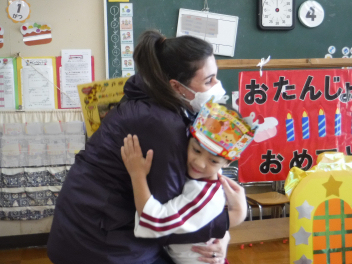 先生からは、頑張っていることや好きなことを紹介してもらい、誕生カードがプレゼントされました。ママからのメッセージは、少し照れているのか緊張した様子でしたが、ギュッとハグしてもらっている時は、最高の笑顔でした。