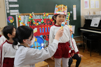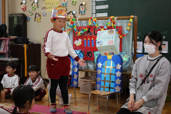 園庭では遊んだり、室内で発表会の準備をしたり、いろいろな遊びに先生方に入ってもらったり、手伝ってもらったりして楽しい時間を過ごしました。