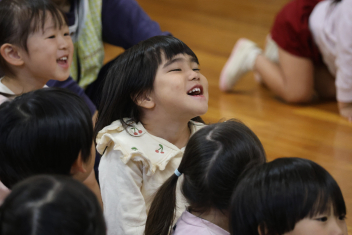 年中さんは、しっぽ取りをしました。取ったり取られたりでした。楽しかったようで、もう1回やろうという声が出て、予定より1回増えたようです。