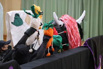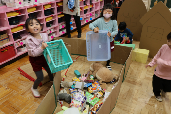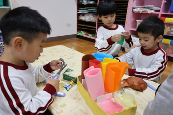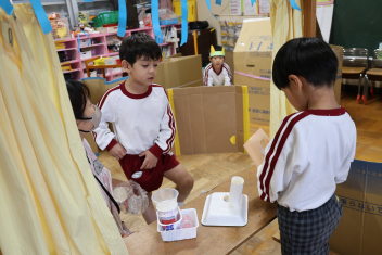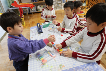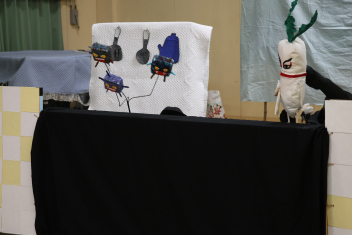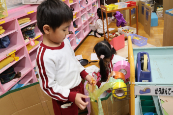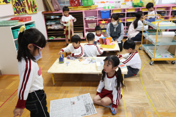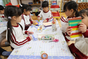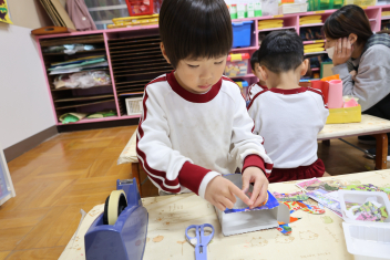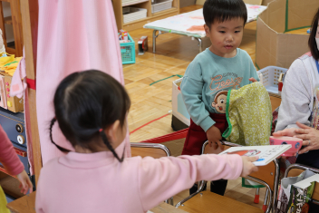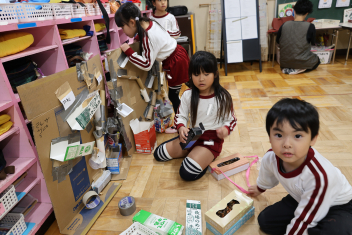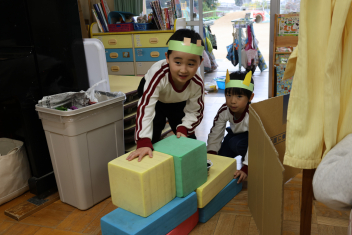年中さんや年長さんは、生活発表会で使う大道具や小道具を作っています。年長さんは、セリフも自分たちで考えていました。