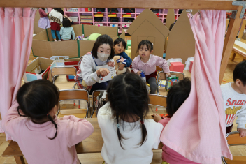 • 音楽や歌に合わせて動かすリトミックを行いました。ピアノ伴奏に合わせて自然に体を動かしていました。心も弾んでいました。今回の保育活動は、赤佐幼稚園の特色化推進事業の一環として行いました。