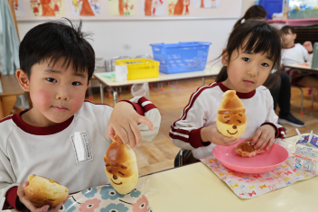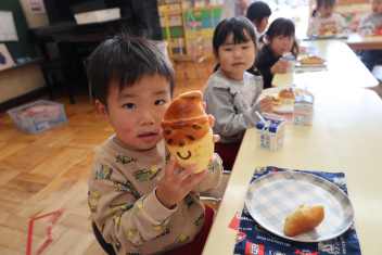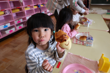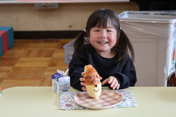 自動販売機からお願いしたものが出てくることや、友達との言葉のやりとりを楽しむ劇遊びでした。なりきることが大好きなたんぽぽ組の子供たちが、いろいろな動物になって登場しました。帽子もかわいらしかったですね。