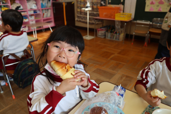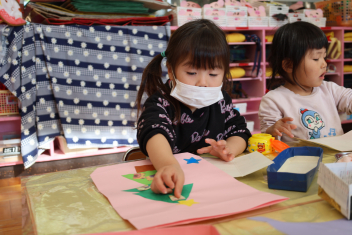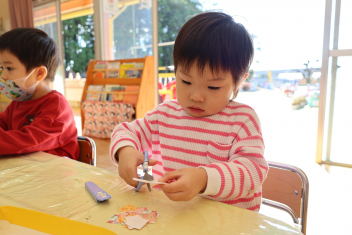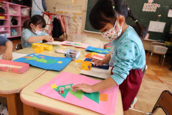 幼稚園に入園して友達と一緒に歌うことが大好きになった子供たちが、みんなで元気よく歌ったり、マラカスを鳴らしたりしました。