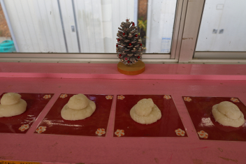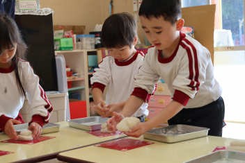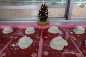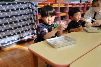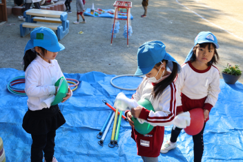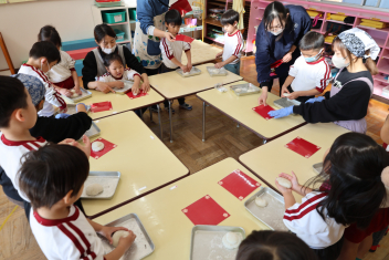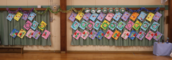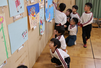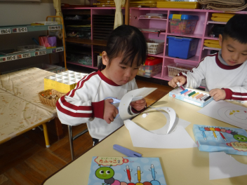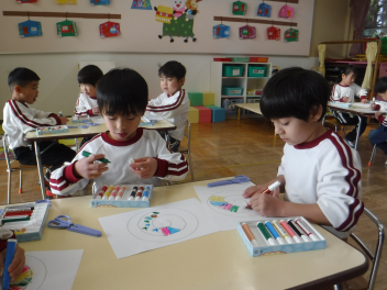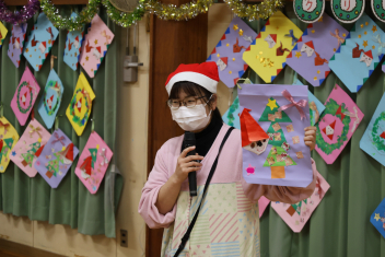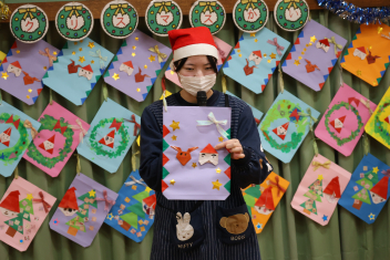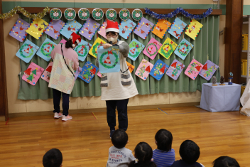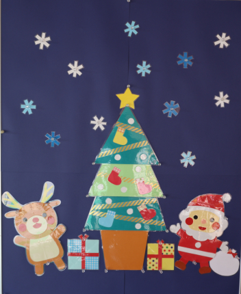(年少さんはサンタとツリー、年中さんはサンタとリース、年長さんはサンタとトナカイでした。)