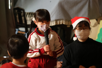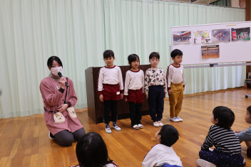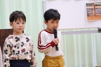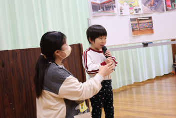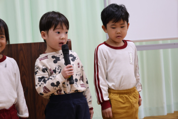 サンタへの質問タイムでは、聞いてみたいことがいっぱいあったようで、大勢の子が手を挙げていました。代表して年長さんが聞いてみたかったことを尋ねました。