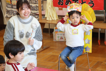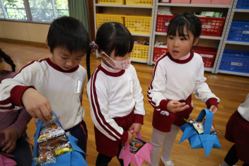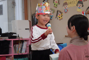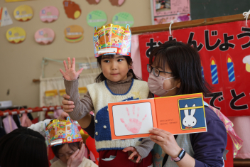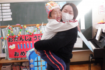 今日は、1月生まれの誕生会でした。各クラスで先生、友達、おうちの人に祝ってもらいました。やっぱり、おうちの人のメッセージやぐっとハグしてもらっている時が一番の笑顔でした。