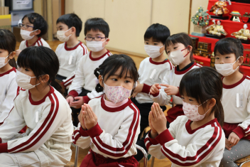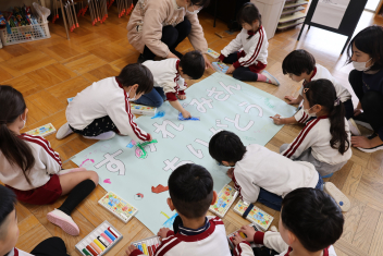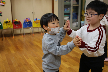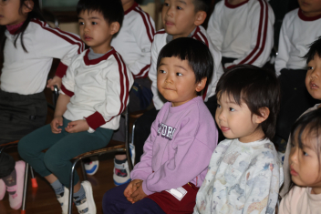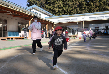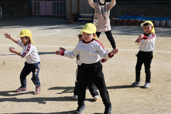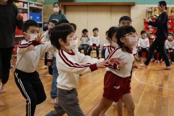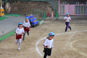 年少さんは、入園して10か月が過ぎて、元気に遊ぶ姿を見てもらえたことと思います。朝マラソンをしっかり走ることができるようになりました。集団での鬼ごっこも楽しむことができるようになりました。
