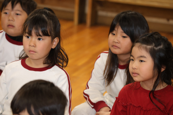 • 今日は、年長さんだけの参加会でした。第Ⅰ部はチャレンジ大会。年長さんがこれまでに遊びの中で挑戦してできるるようになったことを披露しました。お父さんやお母さんが見守る中、緊張しながらも練習を重ねてきた技や動きにチャレンジました。みんな、自分の目標達成に向けて一生懸命に頑張りました。真剣な表情はとても輝いていました。