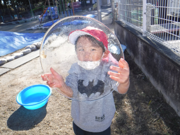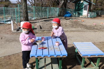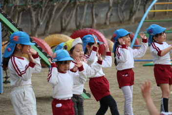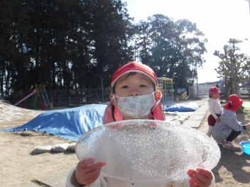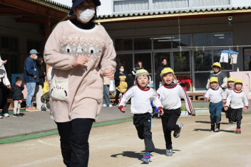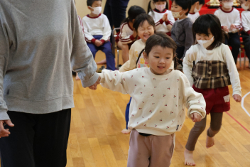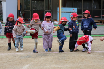年中さんは、2か月後は年長さんとして活躍する成長した様子を感じてもらたことと思います。朝マラソンを力強く走ることができるようになりました。氷にでは、ルールを守って楽しく遊ぶことができました。