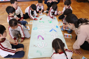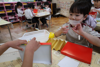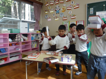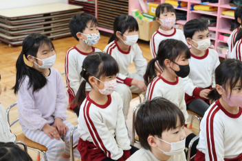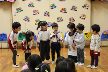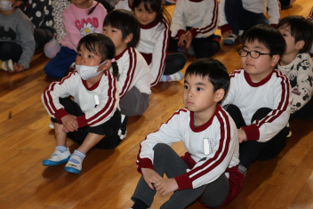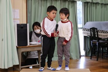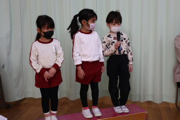年中さんが、木曜日に行うお別れの会に向けて進行や出し物の練習を頑張っています。頼もしくなってきました、お別れ会が楽しみです。