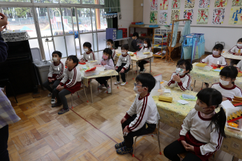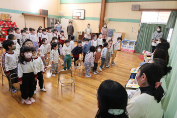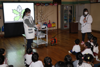 はじめに、担当から絵本「おなかのなかに おにがいる」を読み聞かせをしたり、柊鰯の言い伝えを話したりしました。