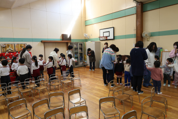 入場は、年長さんが遊戯室の入り口から指定された席までを御案内しました。