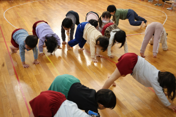 • 1学期から週初めに実施してきたリズム遊びも今日が最後でした。1学期は思うように体を動かせなかった子供たちも、少しずついろいろな部位が動きになじんでできるようになってきました。滑らかになるにはもう少し時間がかかるでしょうが、継続することが大事ですので、来年度も引き続き実施していきます。