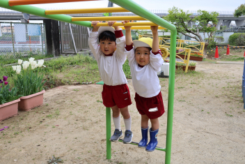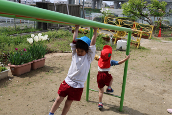 早くも夏日!園庭では25℃越えを記録しました。この暑さの中でも子供たちは元気いっぱい夢中になって遊んでいました。