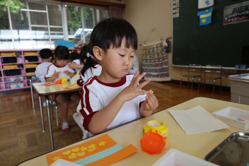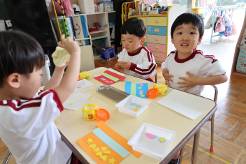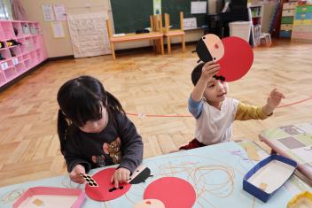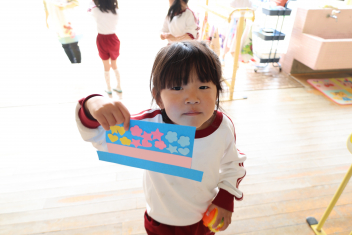 年長さんは、前面の誕生表として張る、自分の顔を製作しました。(設定は、宝箱から出てくる海賊だそうです。)