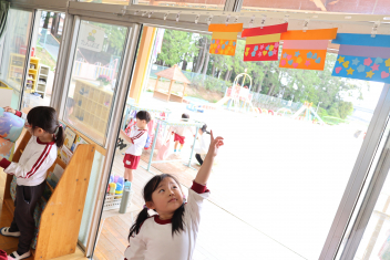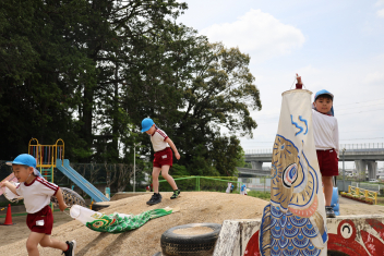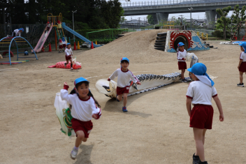今日から鯉のぼりをあげました。残念なことに風が吹かなかったので泳いでいるところは見られませんでしたが、子供たちが手に持った鯉のぼりは気持ちよく泳いでいました。